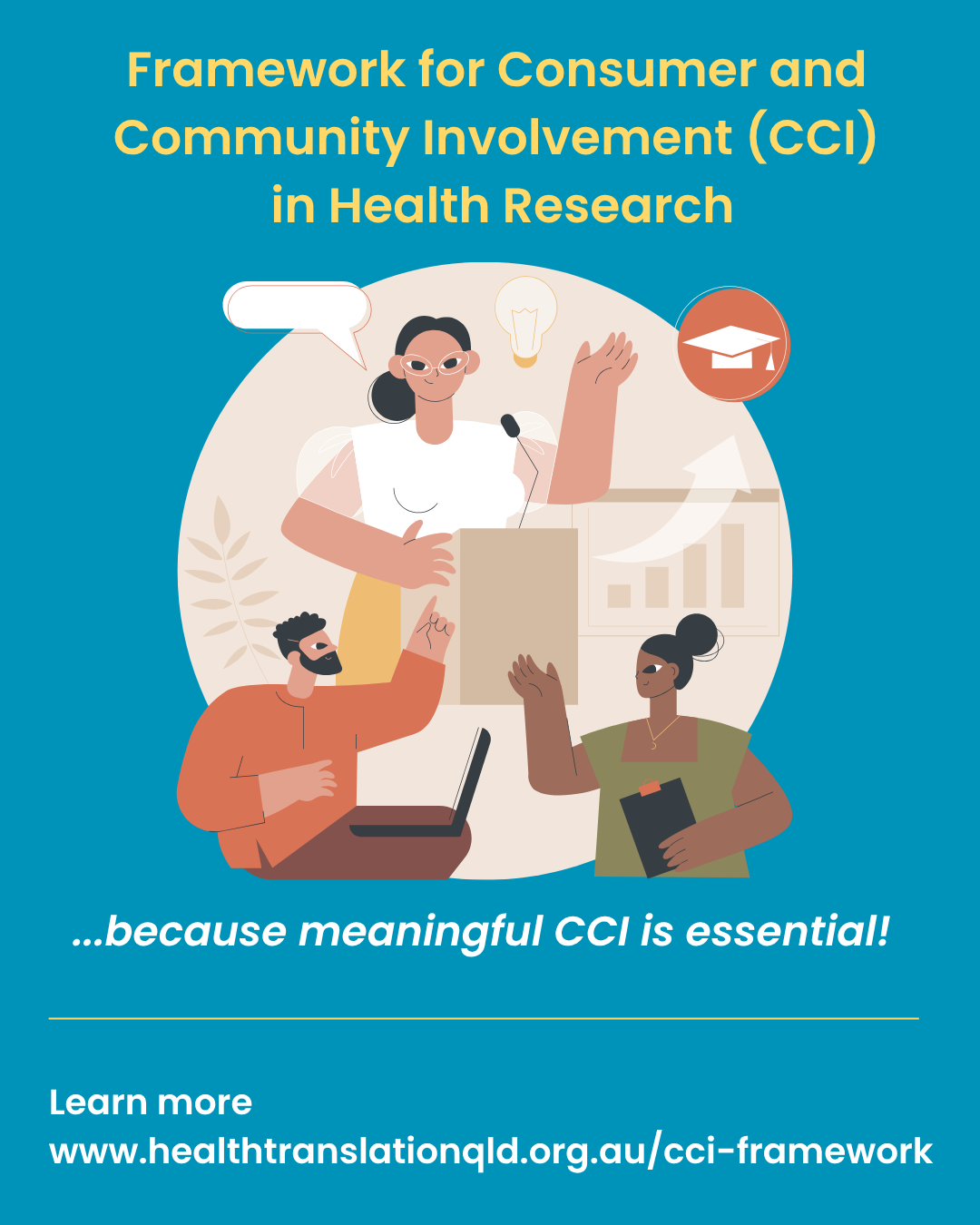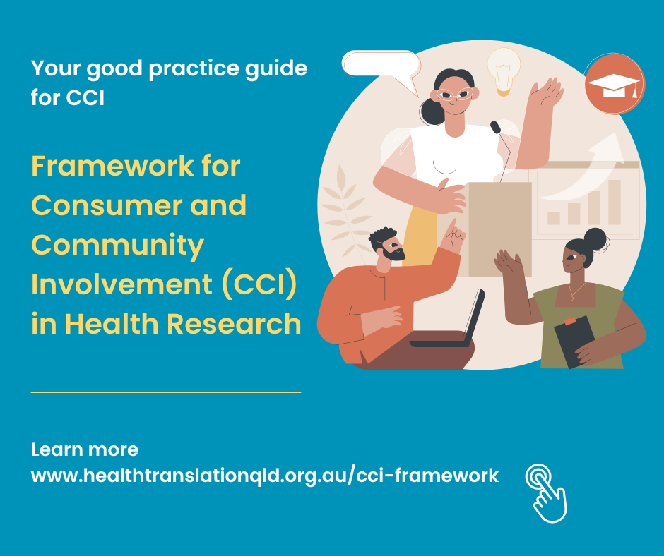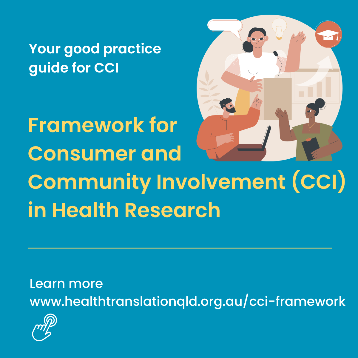 Health Translation Queensland has released the Framework for Consumer and Community Involvement (CCI) in Health Research — a practical guide to help researchers embed meaningful consumer and community involvement across every stage of the research cycle.